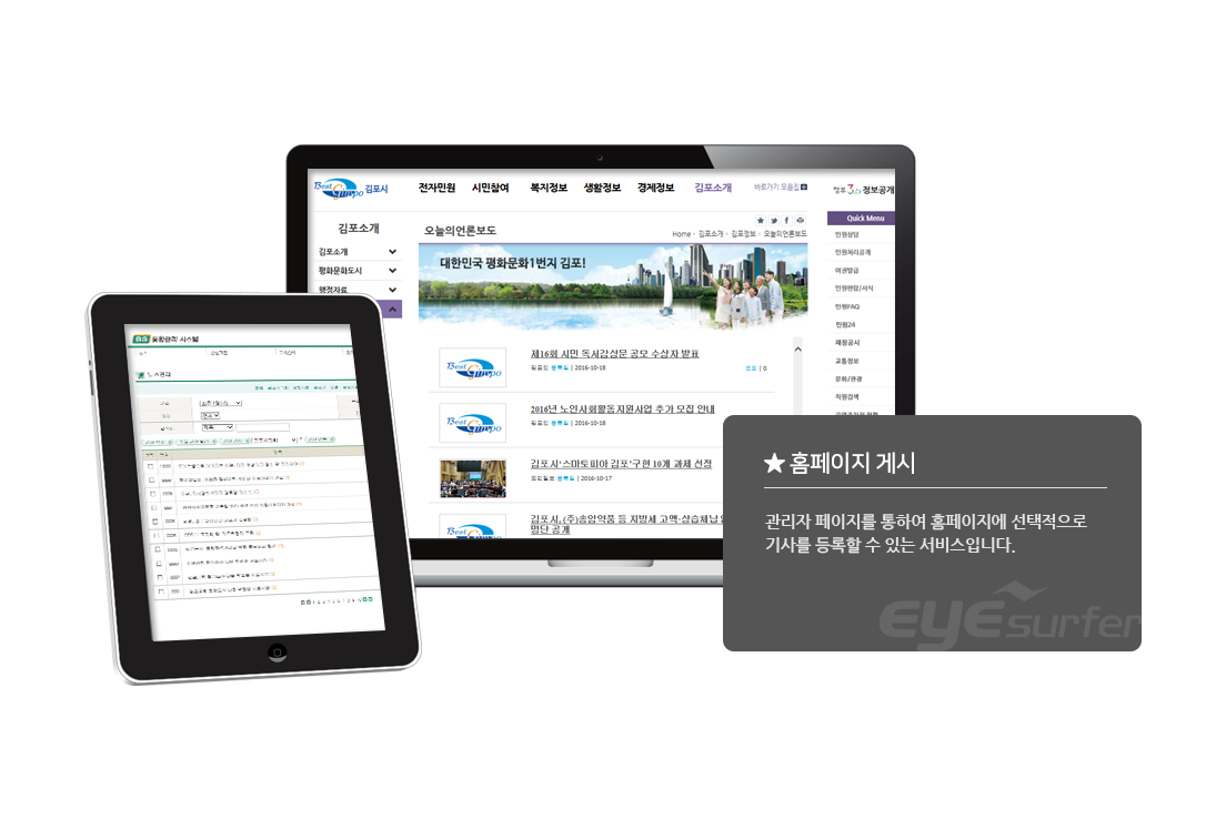 수집된 정보는 관리자 페이지를 통하여 홈페이지에 선택적으로 기사를 등록할 수 있는 서비스입니다.
